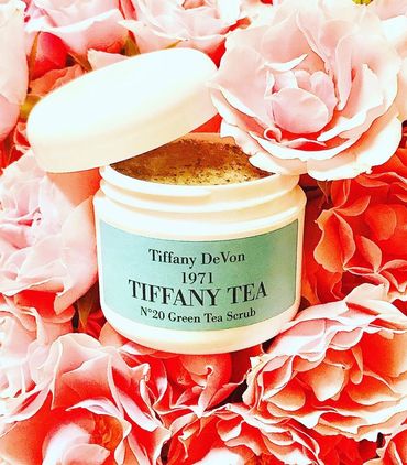The Tiffany DeVon 1971 TIFFANY TEA N°20 Green Tea Facial Scrub is for Sensitive Skin, including Rosacea & Acne-Prone Skin. The Anti-Oxidant, Green Tea will reduce redness, fighting premature aging by minimizing fine lines and wrinkles also aide in the repair of UV sun damage. The exfoliation of dead skin cells will reveal younger glowing skin!